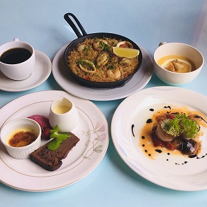 自慢のパエリアにオードブル・デザート盛り合わせをセットした、シェフお勧めのディナーはいかがでしょうか? ・赤エビとベーコンの香草パン粉焼 ・スープ ・シーフードのパエリア※ ・デザート盛り合わせ ・コーヒー |