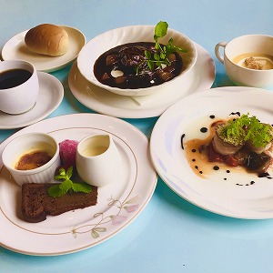 | プティディナー ・オードブル2品 ・ポタージュ ・肉料理(または魚料理) ・特製デザート盛り合わせ ・パン(またはライス) ・コーヒー ※複数名でご注文のお客様は、メイン料理を統一して頂くようになります。 |